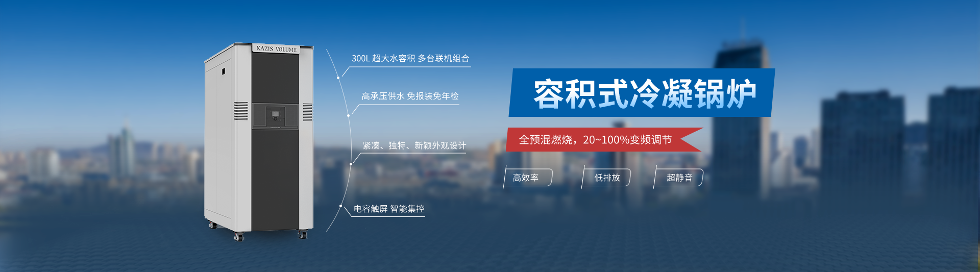 全預(yù)混燃燒,20~100%變頻調(diào)節(jié)